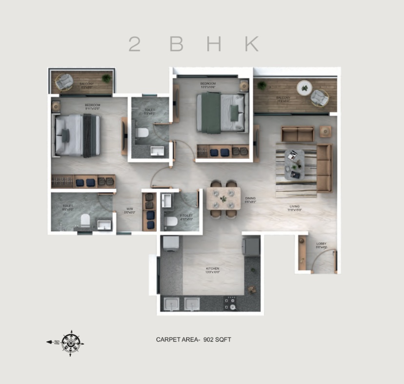 What sets ALa Carte Homes apart is its philosophy of flexible living. Choose from intelligently designed 2 and 3 BHK residences tailored to your lifestyle. The 2 BHK homes feature walk-in wardrobes and the option to combine select units into a spacious 4 BHK. The 3 BHK residences offer dual balconies, two dedicated parking spaces, and enhanced comfort for elevated living.